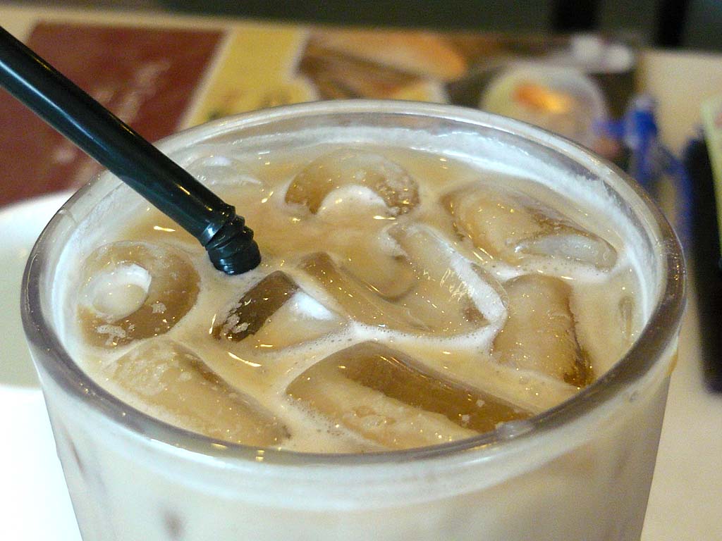 | Long, tall iced white coffee. |